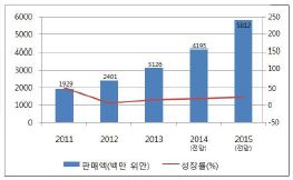 <2011~2015³â »ê¾÷¿ë ·Îº¿ ÁÖ¿ä½ÃÀå ÆÇ¸Å¾× ¹× ¼ºÀå·ü>